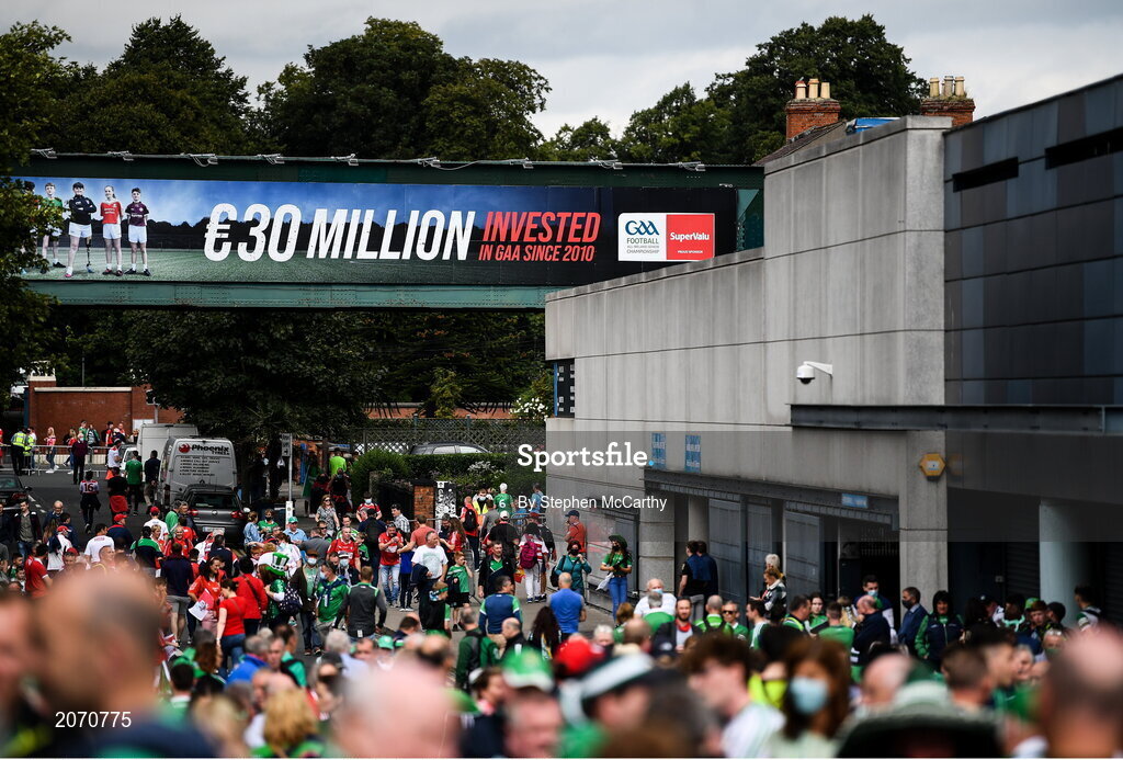 22 August 2021; Supporters on Jones' Road before the GAA Hurling All-Ireland Senior Championship Final match between Cork and Limerick in Croke Park, Dublin. Photo by Stephen McCarthy/Sportsfile