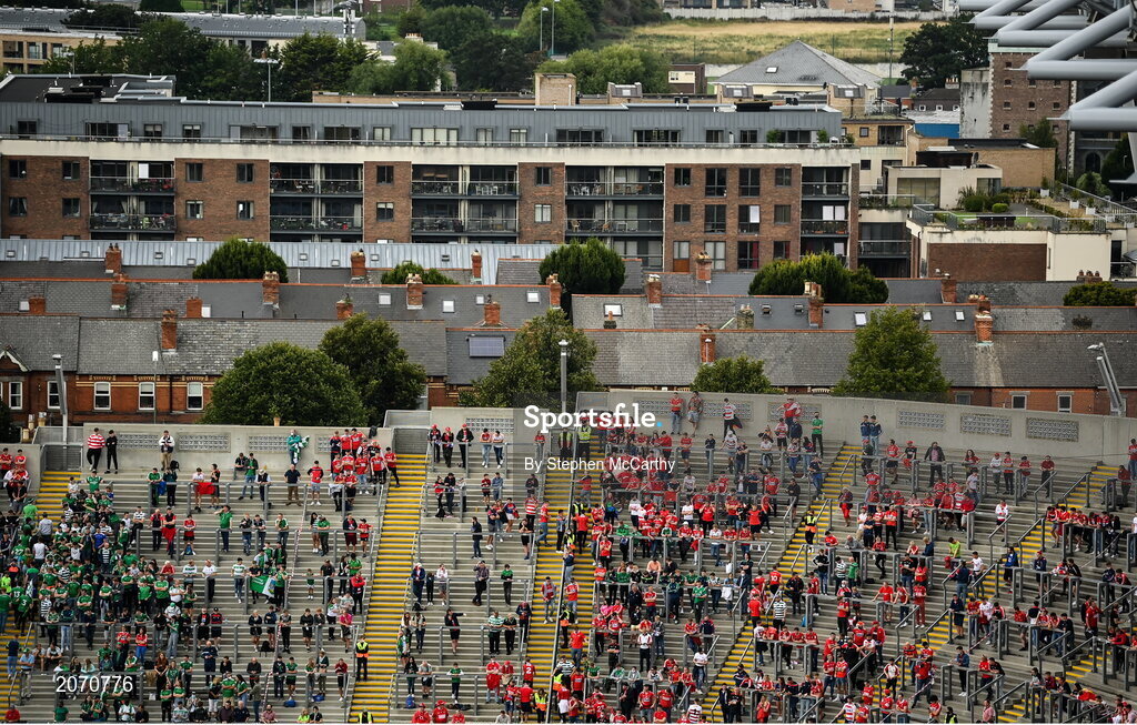 22 August 2021; Supporters on Hill 16 during the GAA Hurling All-Ireland Senior Championship Final match between Cork and Limerick in Croke Park, Dublin. Photo by Stephen McCarthy/Sportsfile