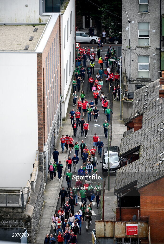 22 August 2021; Supporters arrive to Croke Park via St Margaret's Avenue before the GAA Hurling All-Ireland Senior Championship Final match between Cork and Limerick in Croke Park, Dublin. Photo by Stephen McCarthy/Sportsfile