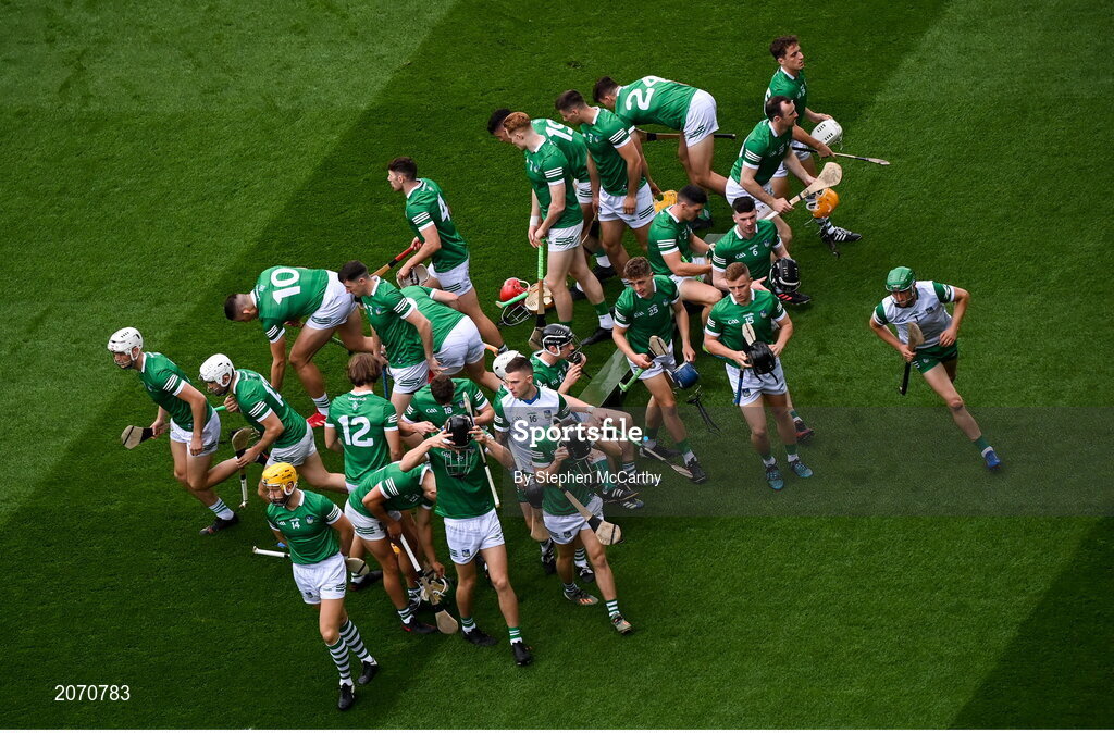 22 August 2021; Limerick players break away after having their team photograph taken before the GAA Hurling All-Ireland Senior Championship Final match between Cork and Limerick in Croke Park, Dublin. Photo by Stephen McCarthy/Sportsfile
