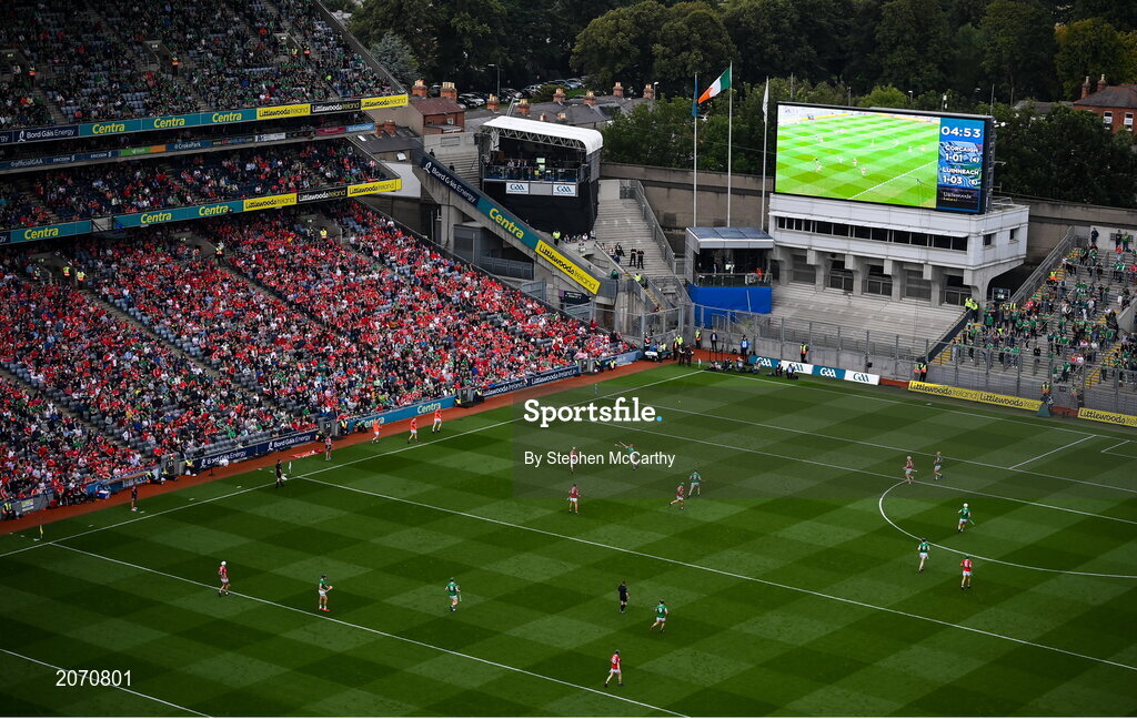 22 August 2021; A general view of the action during the GAA Hurling All-Ireland Senior Championship Final match between Cork and Limerick in Croke Park, Dublin. Photo by Stephen McCarthy/Sportsfile