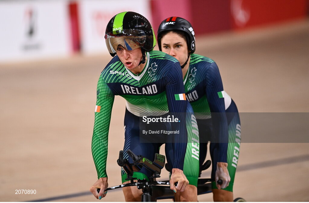 26 August 2021; Eve McCrystal, left, and Katie-George Dunlevy of Ireland compete in the Women's B 1000 metre time trial final at the Izu Velodrome on day two during the Tokyo 2020 Paralympic Games in Tokyo, Japan. Photo by David Fitzgerald/Sportsfile