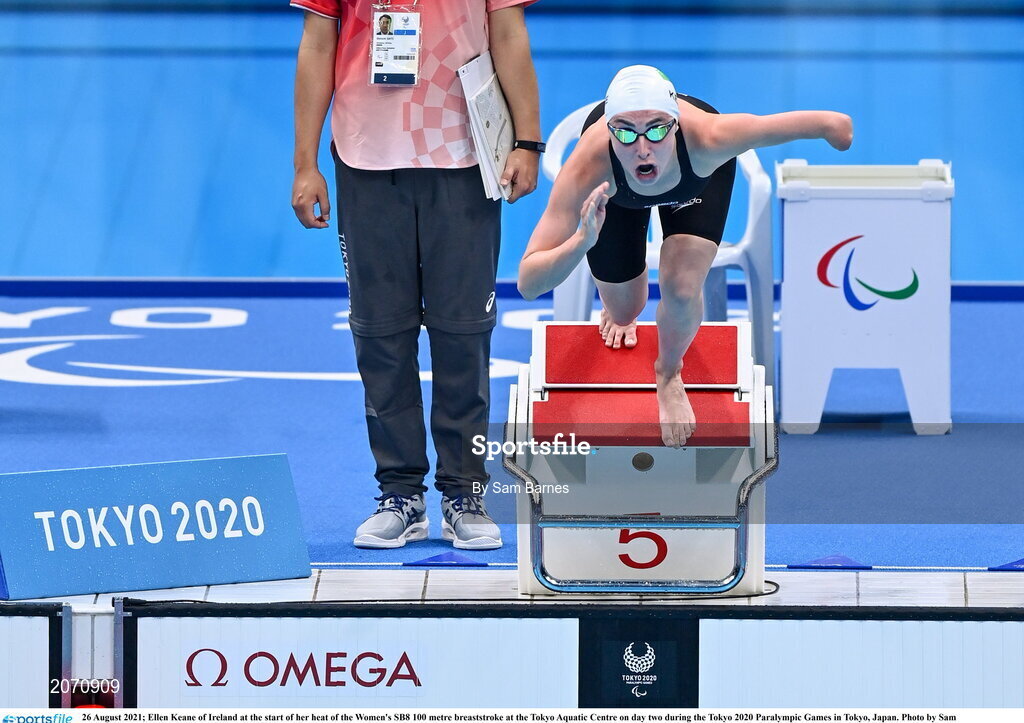 26 August 2021; Ellen Keane of Ireland at the start of her heat of the Women's SB8 100 metre breaststroke at the Tokyo Aquatic Centre on day two during the Tokyo 2020 Paralympic Games in Tokyo, Japan. Photo by Sam Barnes/Sportsfile