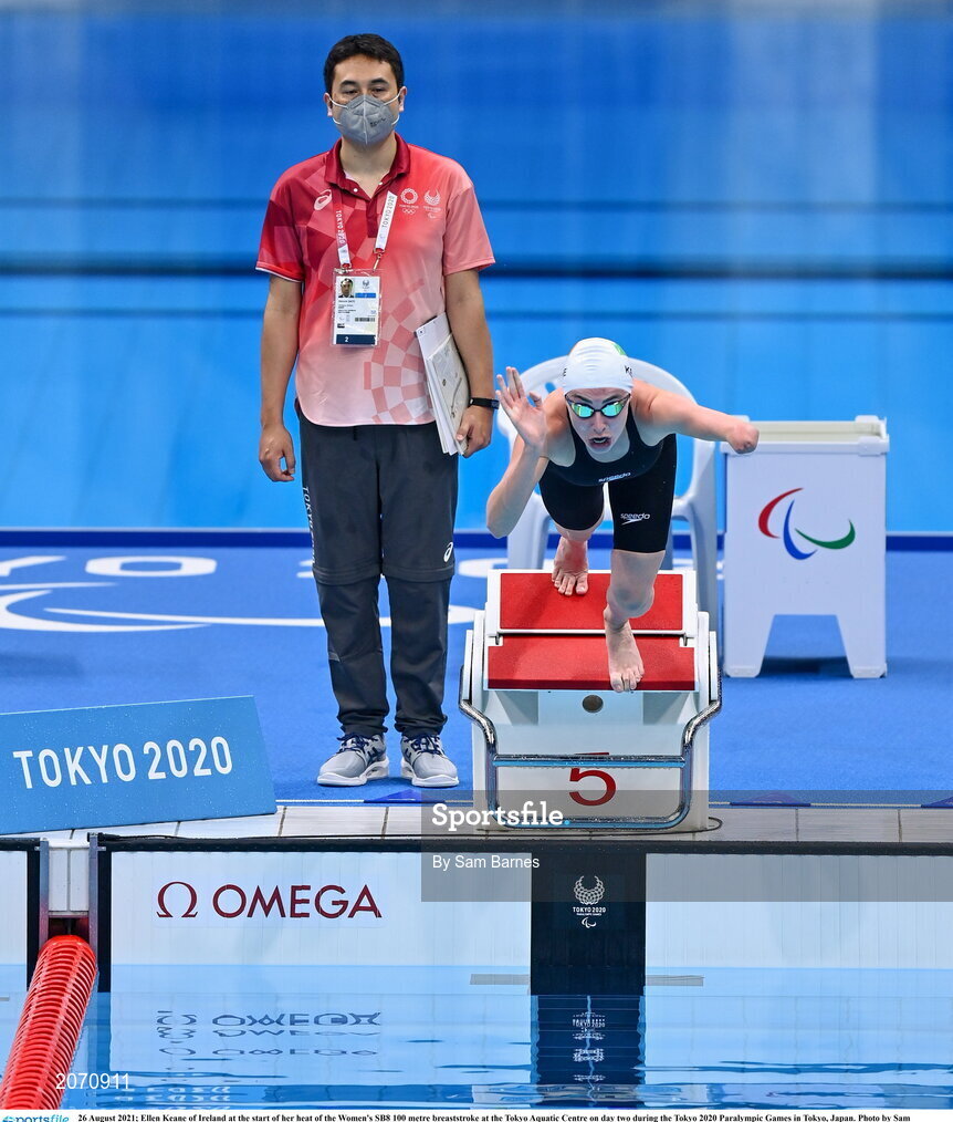 26 August 2021; Ellen Keane of Ireland at the start of her heat of the Women's SB8 100 metre breaststroke at the Tokyo Aquatic Centre on day two during the Tokyo 2020 Paralympic Games in Tokyo, Japan. Photo by Sam Barnes/Sportsfile