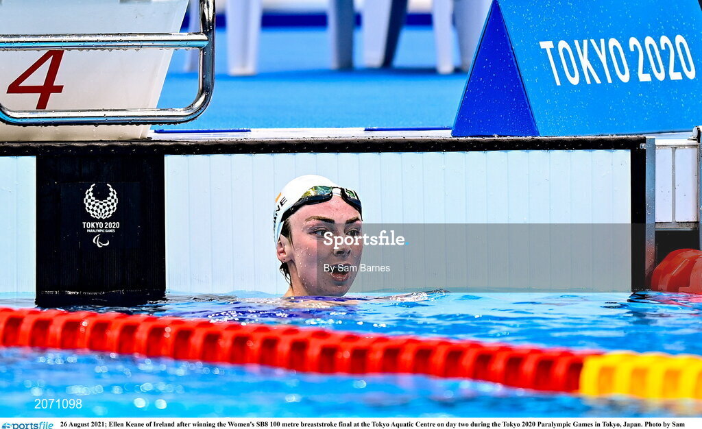 26 August 2021; Ellen Keane of Ireland after winning the Women's SB8 100 metre breaststroke final at the Tokyo Aquatic Centre on day two during the Tokyo 2020 Paralympic Games in Tokyo, Japan. Photo by Sam Barnes/Sportsfile