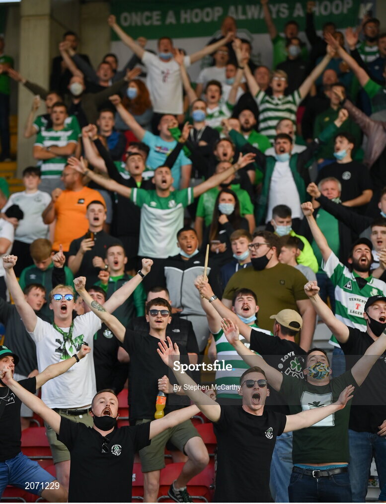 26 August 2021; Shamrock Rovers supporters during the UEFA Europa Conference League play-off second leg match between Shamrock Rovers and Flora Tallinn at Tallaght Stadium in Dublin. Photo by Stephen McCarthy/Sportsfile