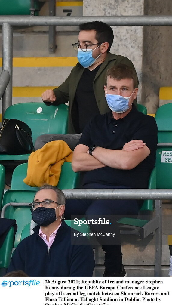 26 August 2021; Republic of Ireland manager Stephen Kenny during the UEFA Europa Conference League play-off second leg match between Shamrock Rovers and Flora Tallinn at Tallaght Stadium in Dublin. Photo by Stephen McCarthy/Sportsfile