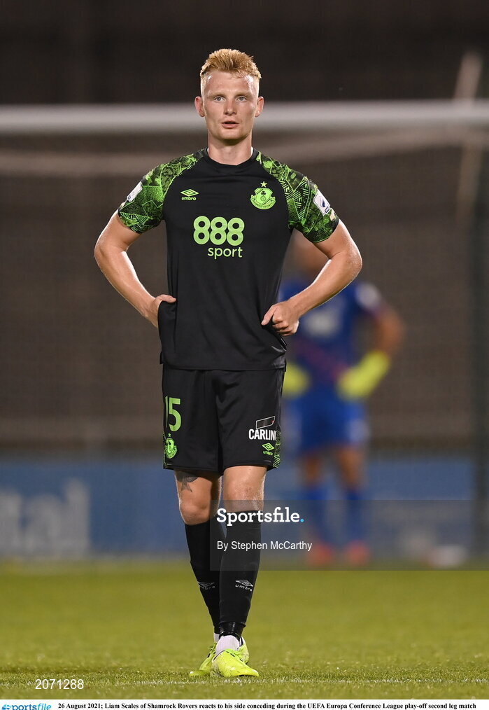 26 August 2021; Liam Scales of Shamrock Rovers reacts to his side conceding during the UEFA Europa Conference League play-off second leg match between Shamrock Rovers and Flora Tallinn at Tallaght Stadium in Dublin. Photo by Stephen McCarthy/Sportsfile