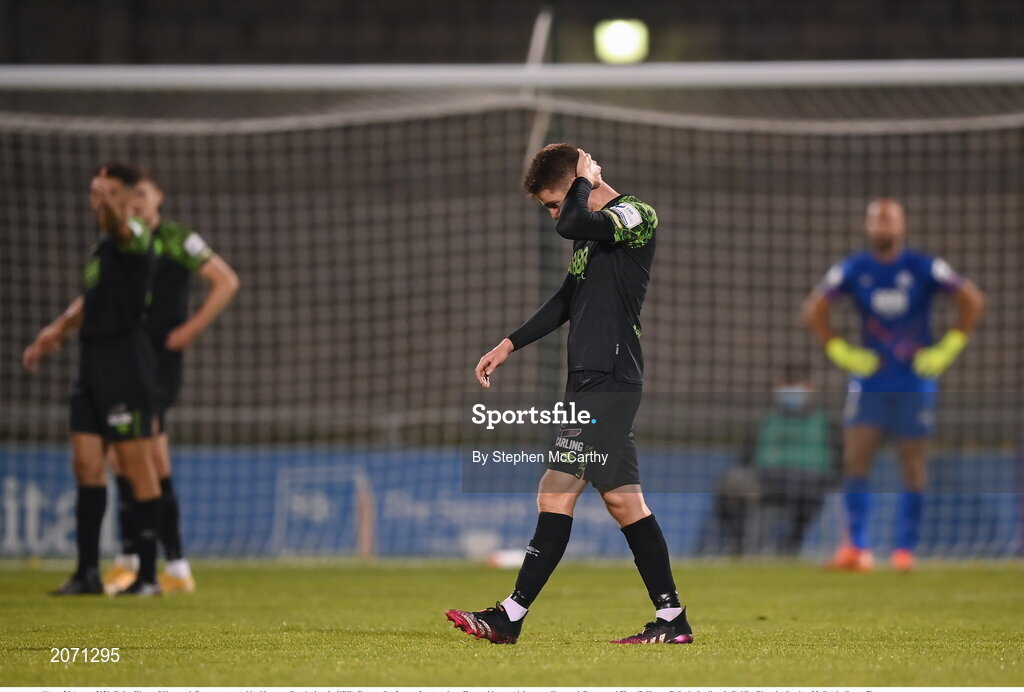 26 August 2021; Dylan Watts of Shamrock Rovers reacts to his side conceding during the UEFA Europa Conference League play-off second leg match between Shamrock Rovers and Flora Tallinn at Tallaght Stadium in Dublin. Photo by Stephen McCarthy/Sportsfile