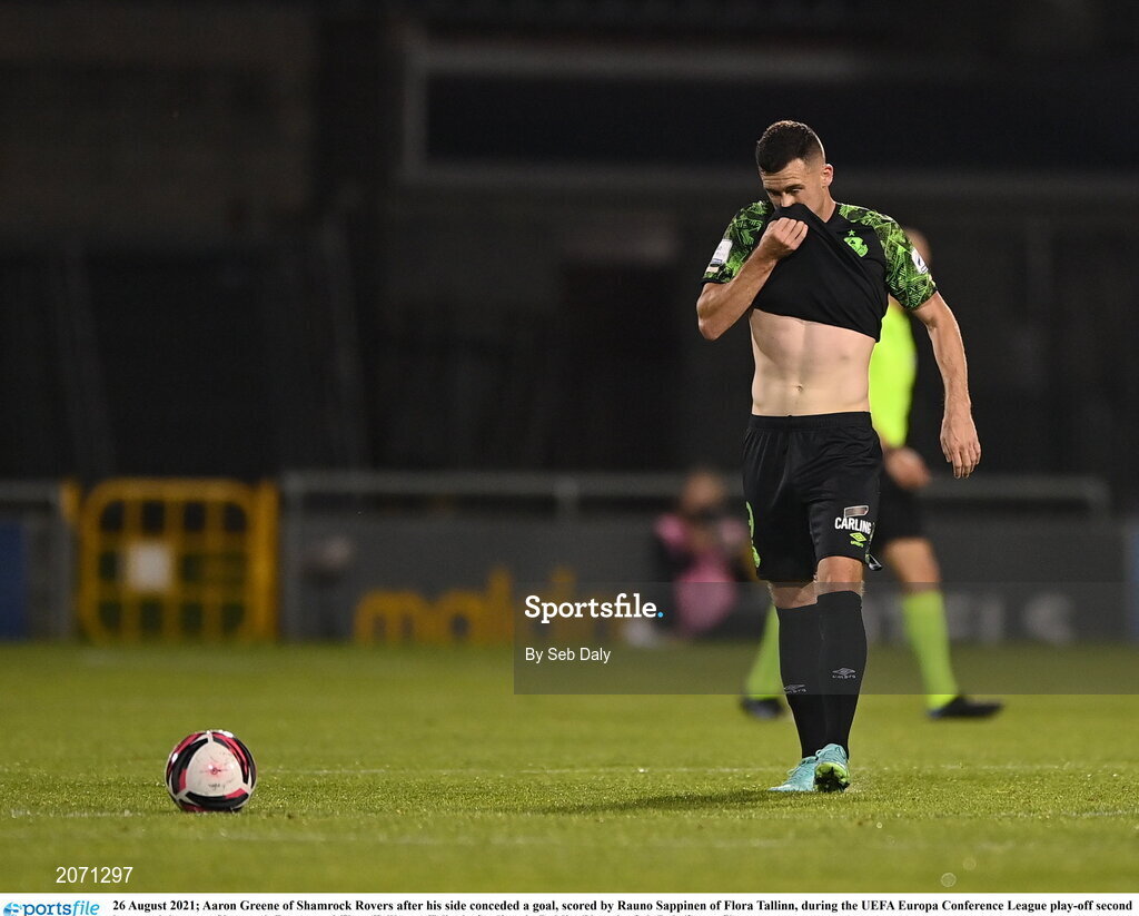 26 August 2021; Aaron Greene of Shamrock Rovers after his side conceded a goal, scored by Rauno Sappinen of Flora Tallinn, during the UEFA Europa Conference League play-off second leg match between Shamrock Rovers and Flora Tallinn at Tallaght Stadium in Dublin. Photo by Seb Daly/Sportsfile
