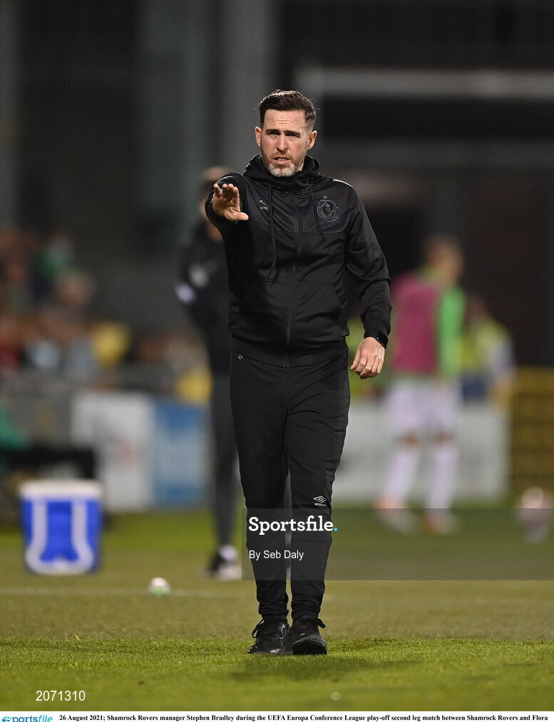 26 August 2021; Shamrock Rovers manager Stephen Bradley during the UEFA Europa Conference League play-off second leg match between Shamrock Rovers and Flora Tallinn at Tallaght Stadium in Dublin. Photo by Seb Daly/Sportsfile