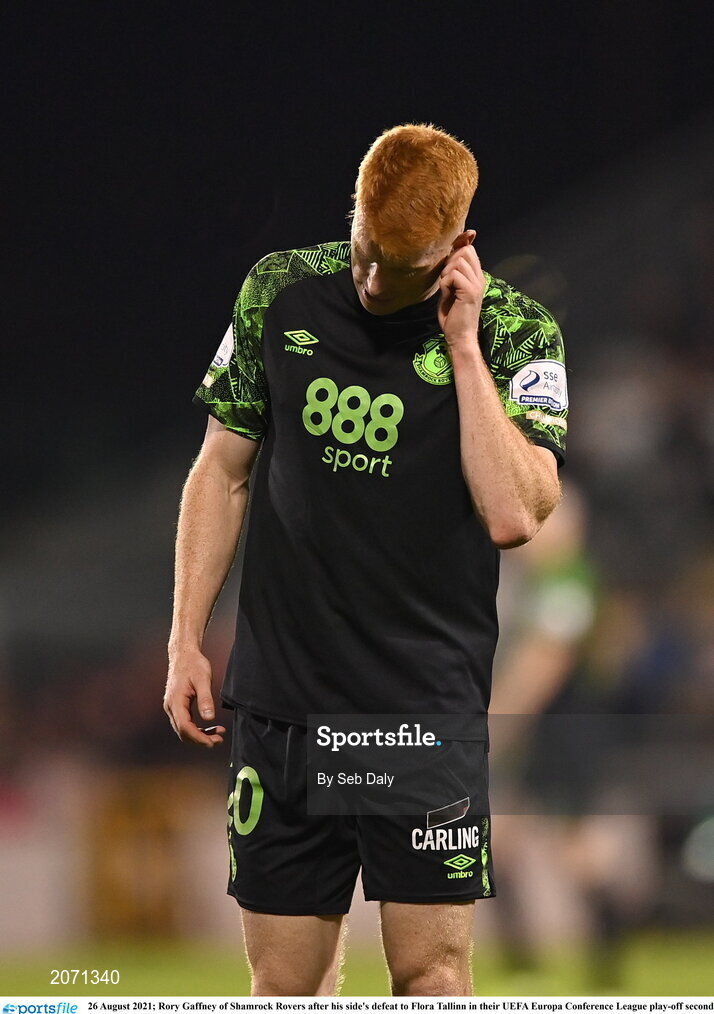 26 August 2021; Rory Gaffney of Shamrock Rovers after his side's defeat to Flora Tallinn in their UEFA Europa Conference League play-off second leg match at Tallaght Stadium in Dublin. Photo by Seb Daly/Sportsfile