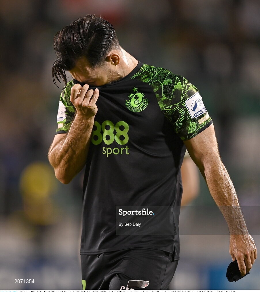 26 August 2021; Richie Towell of Shamrock Rovers after his side's defeat to Flora Tallinn in their UEFA Europa Conference League play-off second leg match at Tallaght Stadium in Dublin. Photo by Seb Daly/Sportsfile