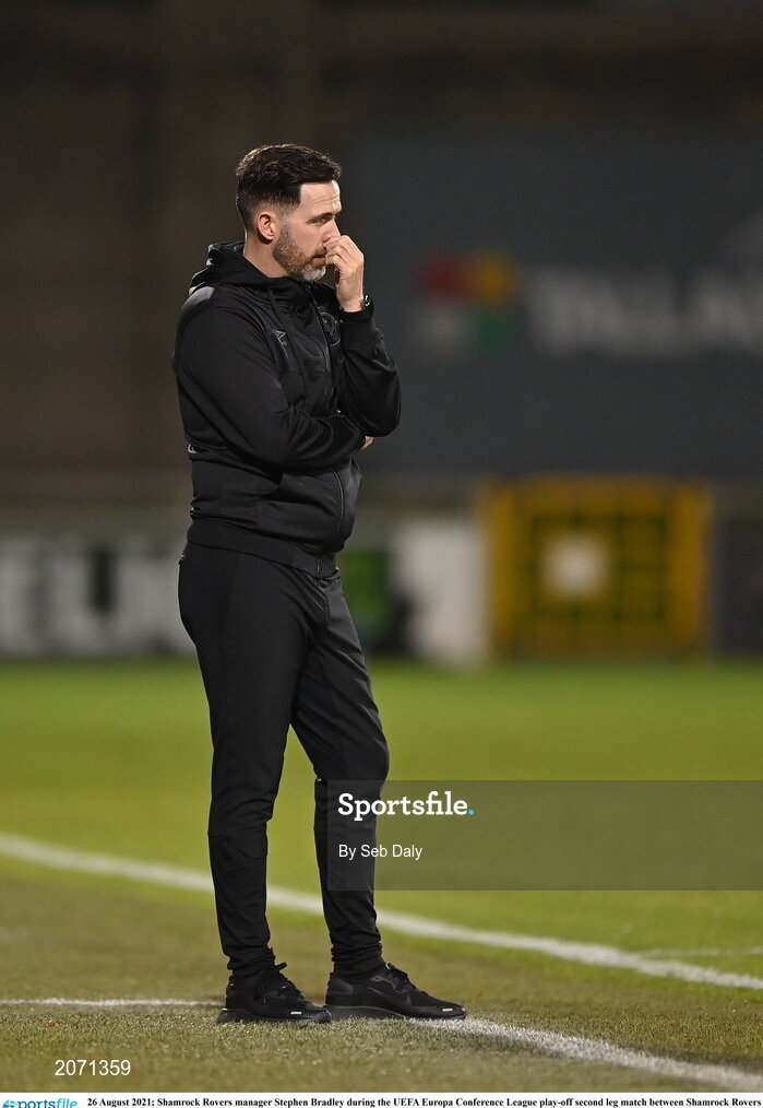 26 August 2021; Shamrock Rovers manager Stephen Bradley during the UEFA Europa Conference League play-off second leg match between Shamrock Rovers and Flora Tallinn at Tallaght Stadium in Dublin. Photo by Seb Daly/Sportsfile