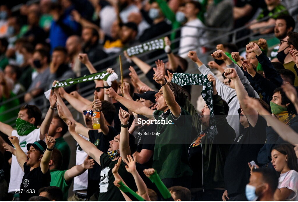 26 August 2021; Shamrock Rovers supporters during the UEFA Europa Conference League play-off second leg match between Shamrock Rovers and Flora Tallinn at Tallaght Stadium in Dublin. Photo by Seb Daly/Sportsfile