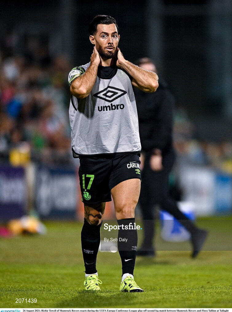 26 August 2021; Richie Towell of Shamrock Rovers reacts during the UEFA Europa Conference League play-off second leg match between Shamrock Rovers and Flora Tallinn at Tallaght Stadium in Dublin. Photo by Seb Daly/Sportsfile