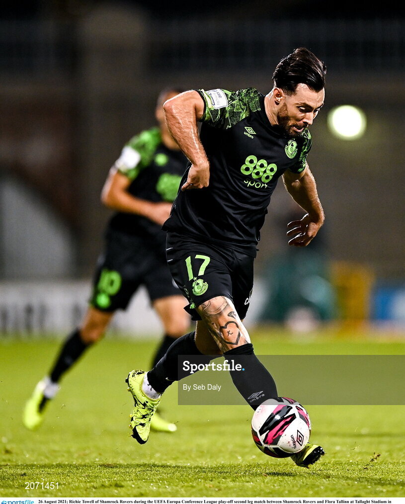 26 August 2021; Richie Towell of Shamrock Rovers during the UEFA Europa Conference League play-off second leg match between Shamrock Rovers and Flora Tallinn at Tallaght Stadium in Dublin. Photo by Seb Daly/Sportsfile