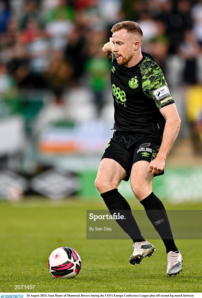 26 August 2021; Sean Hoare of Shamrock Rovers during the UEFA Europa Conference League play-off second leg match between Shamrock Rovers and Flora Tallinn at Tallaght Stadium in Dublin. Photo by Seb Daly/Sportsfile