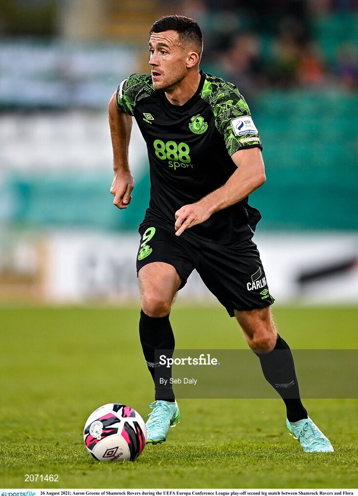 26 August 2021; Aaron Greene of Shamrock Rovers during the UEFA Europa Conference League play-off second leg match between Shamrock Rovers and Flora Tallinn at Tallaght Stadium in Dublin. Photo by Seb Daly/Sportsfile