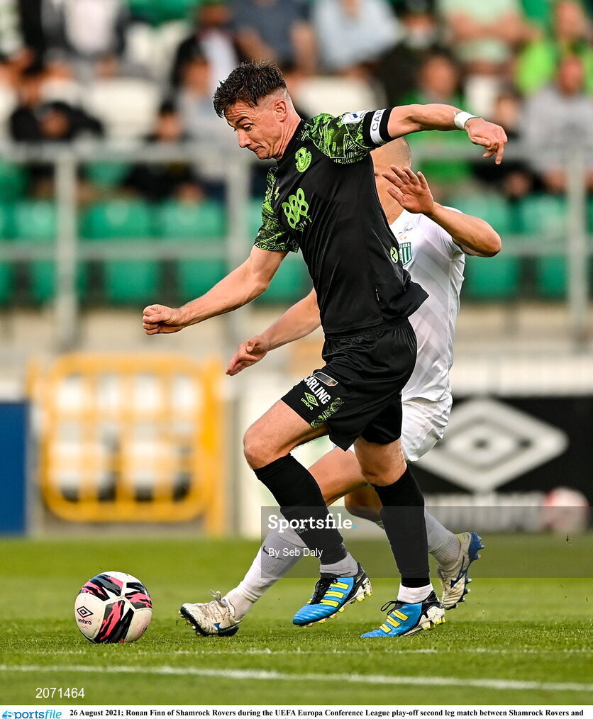 26 August 2021; Ronan Finn of Shamrock Rovers during the UEFA Europa Conference League play-off second leg match between Shamrock Rovers and Flora Tallinn at Tallaght Stadium in Dublin. Photo by Seb Daly/Sportsfile