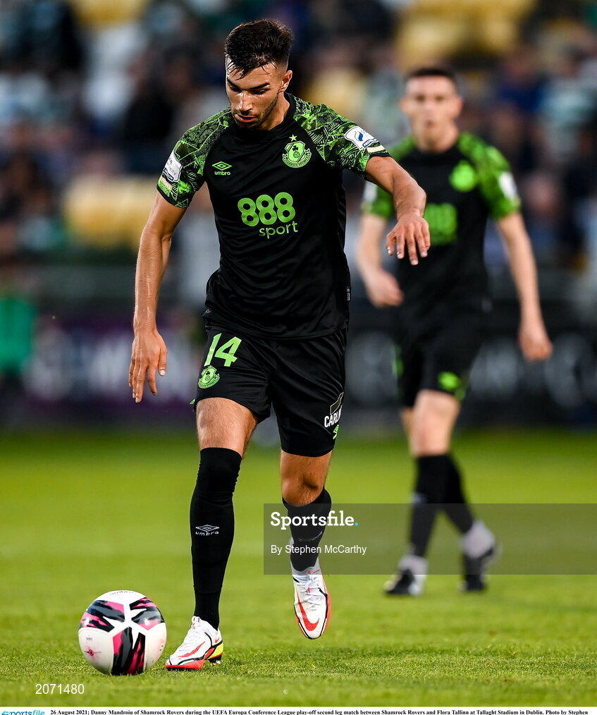 26 August 2021; Danny Mandroiu of Shamrock Rovers during the UEFA Europa Conference League play-off second leg match between Shamrock Rovers and Flora Tallinn at Tallaght Stadium in Dublin. Photo by Stephen McCarthy/Sportsfile