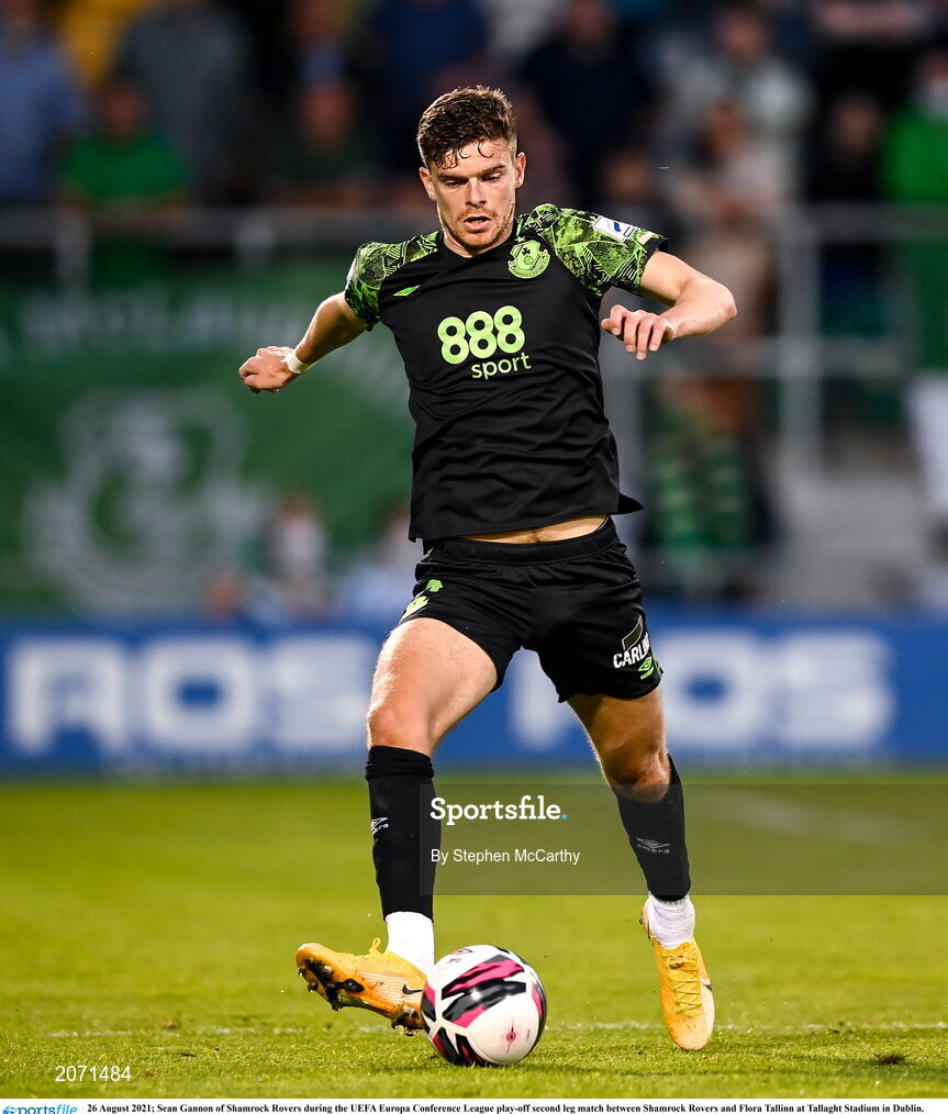 26 August 2021; Sean Gannon of Shamrock Rovers during the UEFA Europa Conference League play-off second leg match between Shamrock Rovers and Flora Tallinn at Tallaght Stadium in Dublin. Photo by Stephen McCarthy/Sportsfile