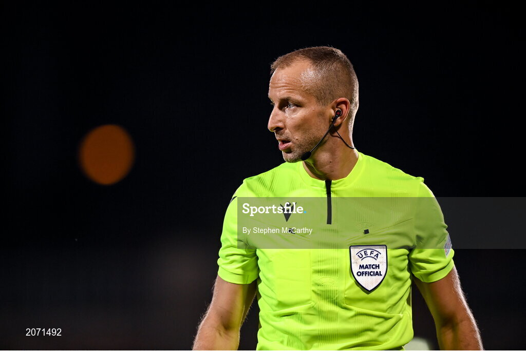 26 August 2021; Referee Tamás Bognár during the UEFA Europa Conference League play-off second leg match between Shamrock Rovers and Flora Tallinn at Tallaght Stadium in Dublin. Photo by Stephen McCarthy/Sportsfile