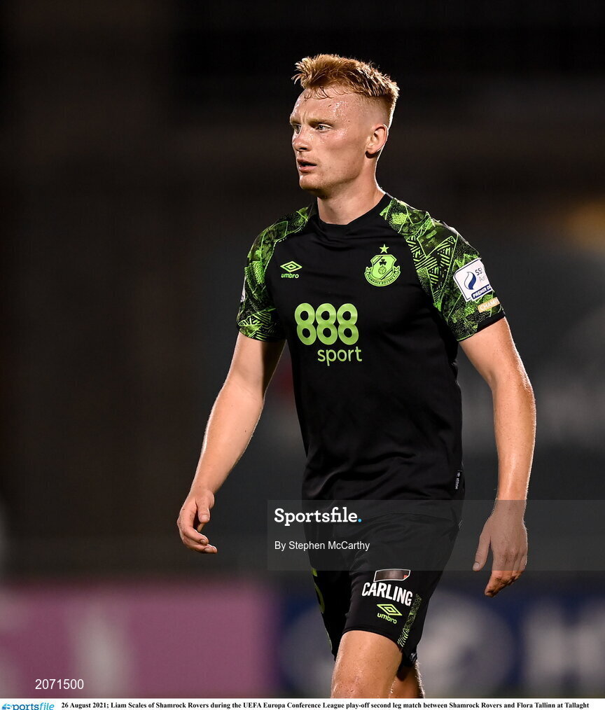 26 August 2021; Liam Scales of Shamrock Rovers during the UEFA Europa Conference League play-off second leg match between Shamrock Rovers and Flora Tallinn at Tallaght Stadium in Dublin. Photo by Stephen McCarthy/Sportsfile