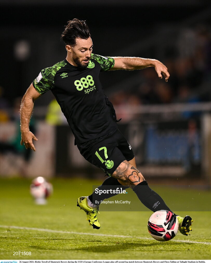 26 August 2021; Richie Towell of Shamrock Rovers during the UEFA Europa Conference League play-off second leg match between Shamrock Rovers and Flora Tallinn at Tallaght Stadium in Dublin. Photo by Stephen McCarthy/Sportsfile