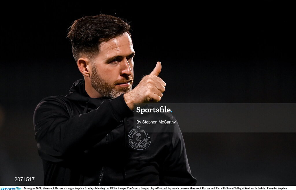 26 August 2021; Shamrock Rovers manager Stephen Bradley following the UEFA Europa Conference League play-off second leg match between Shamrock Rovers and Flora Tallinn at Tallaght Stadium in Dublin. Photo by Stephen McCarthy/Sportsfile