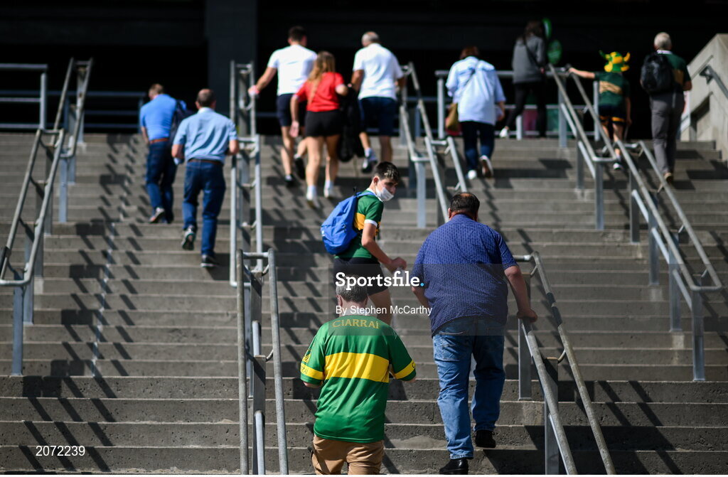 28 August 2021; Supporters arrive for the GAA Football All-Ireland Senior Championship semi-final match between Kerry and Tyrone at Croke Park in Dublin. Photo by Stephen McCarthy/Sportsfile
