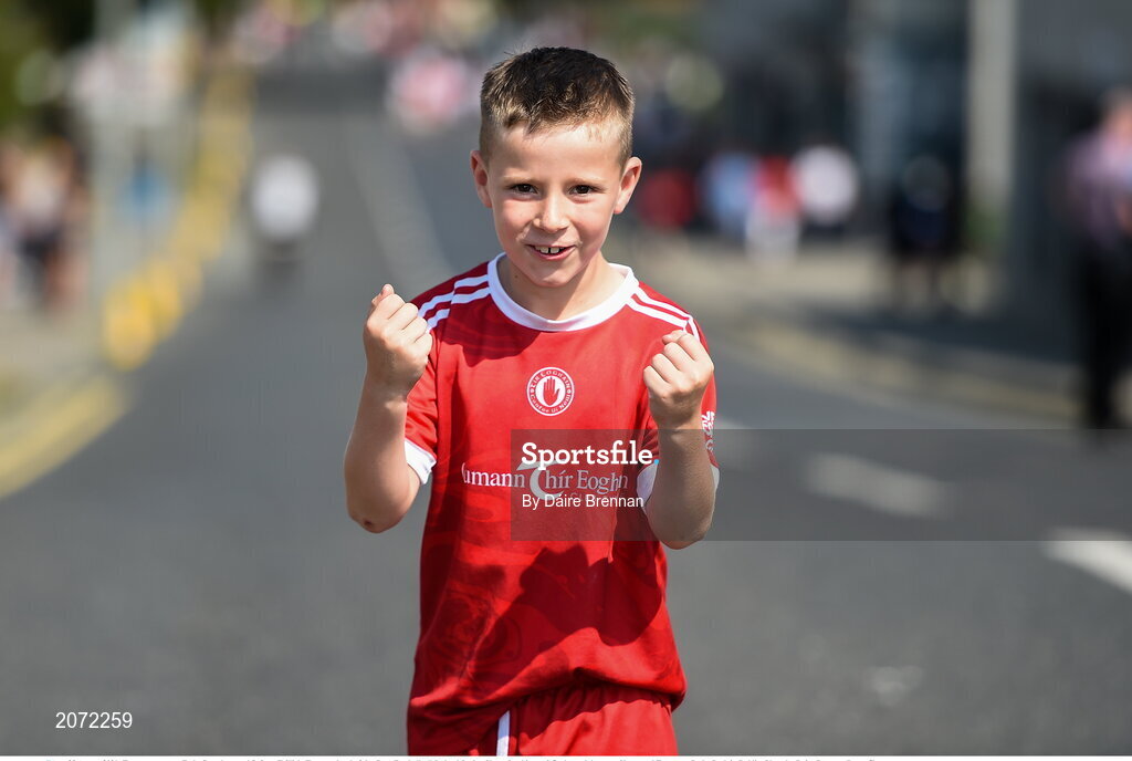 28 August 2021; Tyrone supporter Enda Gormley, aged 7, from Trillick, Tyrone, ahead of the GAA Football All-Ireland Senior Championship semi-final match between Kerry and Tyrone at Croke Park in Dublin. Photo by Daire Brennan/Sportsfile