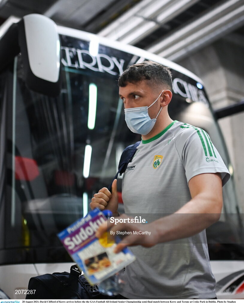 28 August 2021; David Clifford of Kerry arrives before the the GAA Football All-Ireland Senior Championship semi-final match between Kerry and Tyrone at Croke Park in Dublin. Photo by Stephen McCarthy/Sportsfile