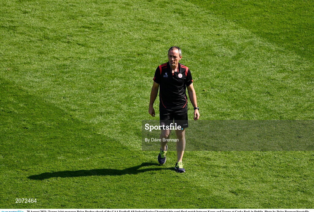 28 August 2021; Tyrone joint-manager Brian Dooher ahead of the GAA Football All-Ireland Senior Championship semi-final match between Kerry and Tyrone at Croke Park in Dublin. Photo by Daire Brennan/Sportsfile