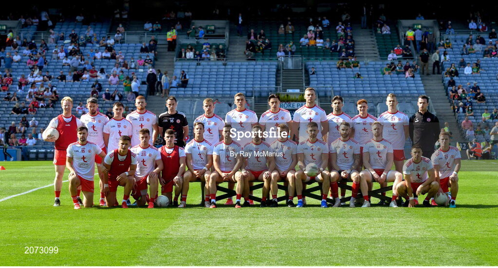 28 August 2021; The Tyrone squad before the GAA Football All-Ireland Senior Championship semi-final match between Kerry and Tyrone at Croke Park in Dublin. Photo by Ray McManus/Sportsfile