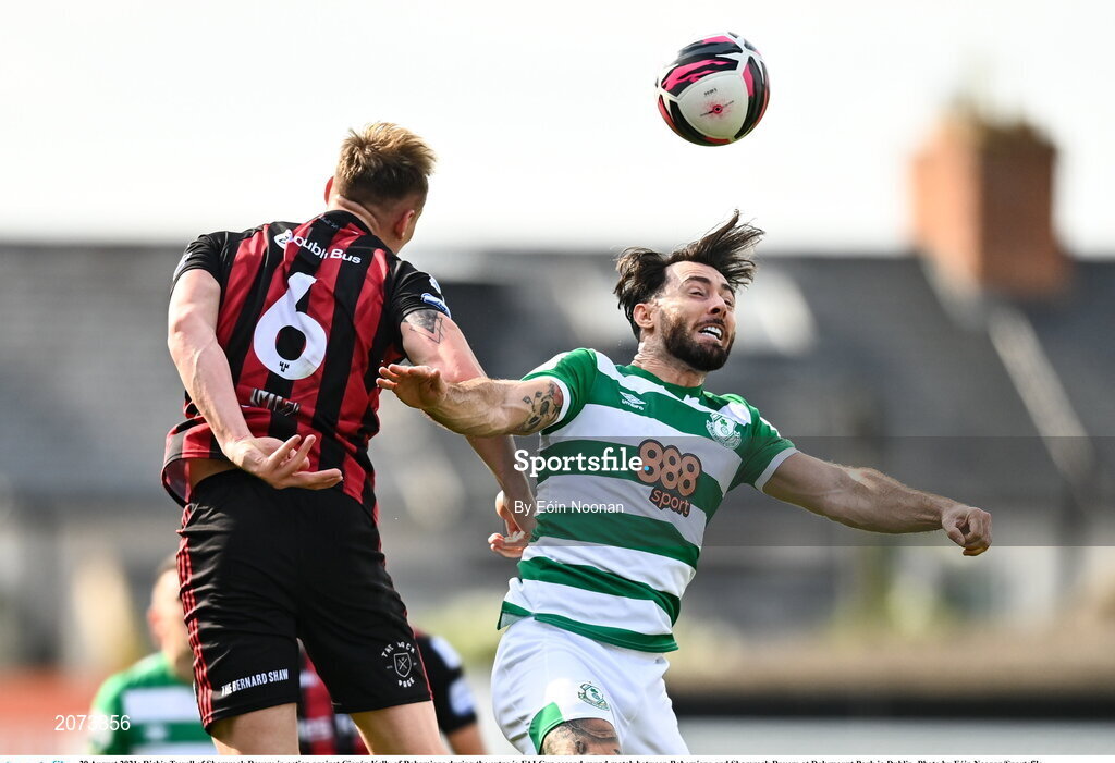 29 August 2021; Richie Towell of Shamrock Rovers in action against Ciarán Kelly of Bohemians during the extra.ie FAI Cup second round match between Bohemians and Shamrock Rovers at Dalymount Park in Dublin. Photo by Eóin Noonan/Sportsfile