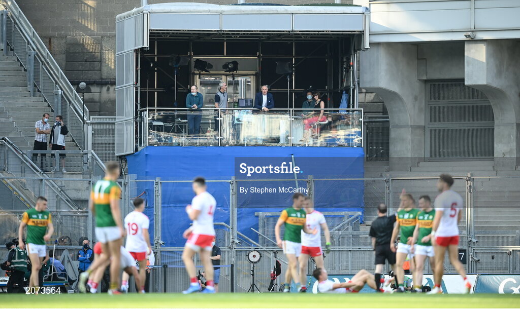 28 August 2021; Sky Sports analysts Kieran Donaghy watches on during the GAA Football All-Ireland Senior Championship semi-final match between Kerry and Tyrone at Croke Park in Dublin. Photo by Stephen McCarthy/Sportsfile