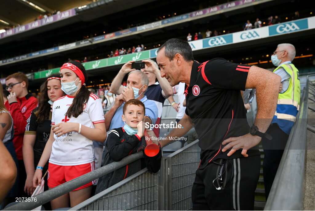 28 August 2021; Tyrone joint-manager Brian Dooher with family following the GAA Football All-Ireland Senior Championship semi-final match between Kerry and Tyrone at Croke Park in Dublin. Photo by Stephen McCarthy/Sportsfile