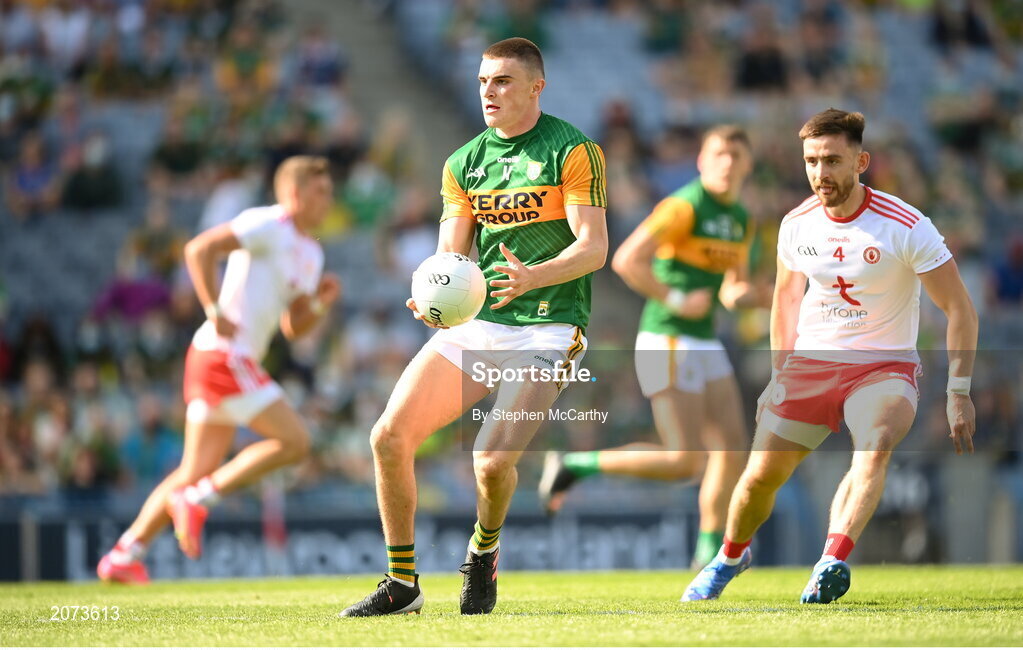 28 August 2021; Seán O'Shea of Kerry during the GAA Football All-Ireland Senior Championship semi-final match between Kerry and Tyrone at Croke Park in Dublin. Photo by Stephen McCarthy/Sportsfile