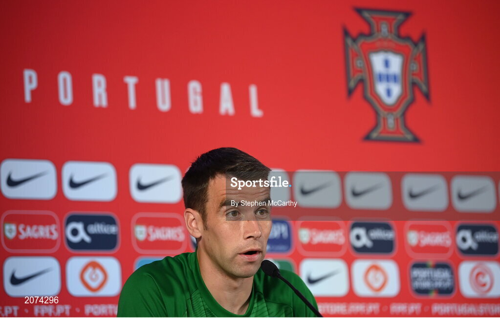 31 August 2021; Seamus Coleman during a Republic of Ireland press conference at Estádio Algarve in Faro, Portugal. Photo by Stephen McCarthy/Sportsfile