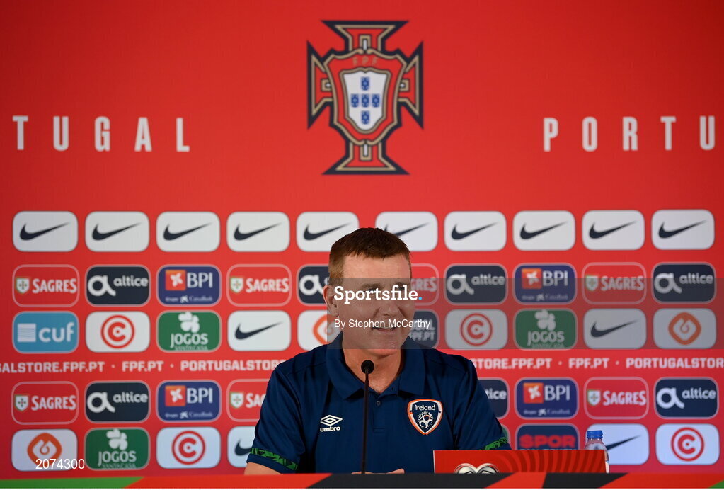 31 August 2021; Manager Stephen Kenny during a Republic of Ireland press conference at Estádio Algarve in Faro, Portugal. Photo by Stephen McCarthy/Sportsfile