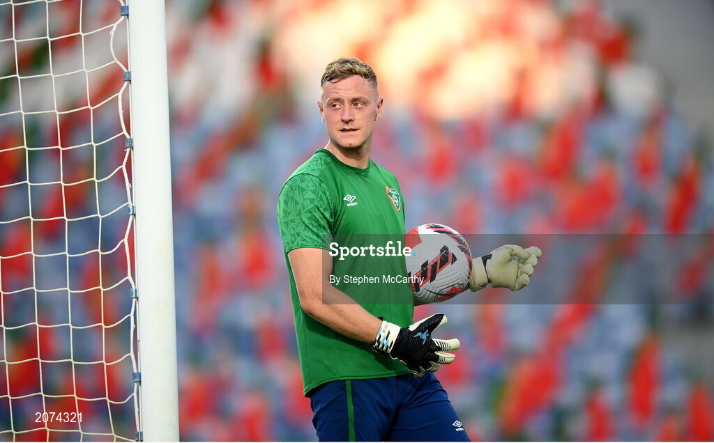 31 August 2021; James Talbot during a Republic of Ireland training session at Estádio Algarve in Faro, Portugal. Photo by Stephen McCarthy/Sportsfile