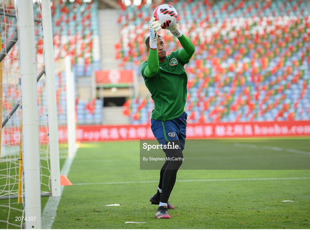 31 August 2021; Goalkeeper Gavin Bazunu during a Republic of Ireland training session at Estádio Algarve in Faro, Portugal. Photo by Stephen McCarthy/Sportsfile