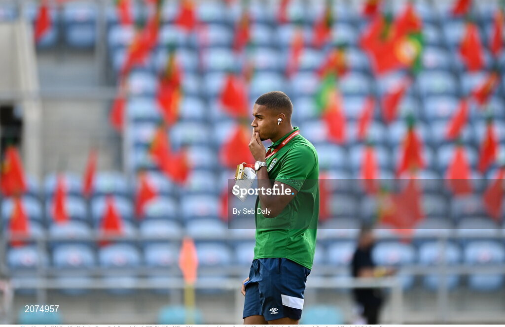 1 September 2021; Republic of Ireland goalkeeper Gavin Bazunu before the FIFA World Cup 2022 qualifying group A match between Portugal and Republic of Ireland at Estádio Algarve in Faro, Portugal. Photo by Seb Daly/Sportsfile