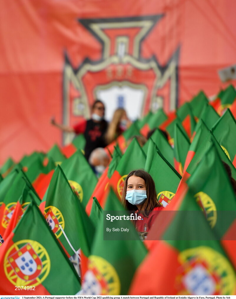 1 September 2021; A Portugal supporter before the FIFA World Cup 2022 qualifying group A match between Portugal and Republic of Ireland at Estádio Algarve in Faro, Portugal. Photo by Seb Daly/Sportsfile