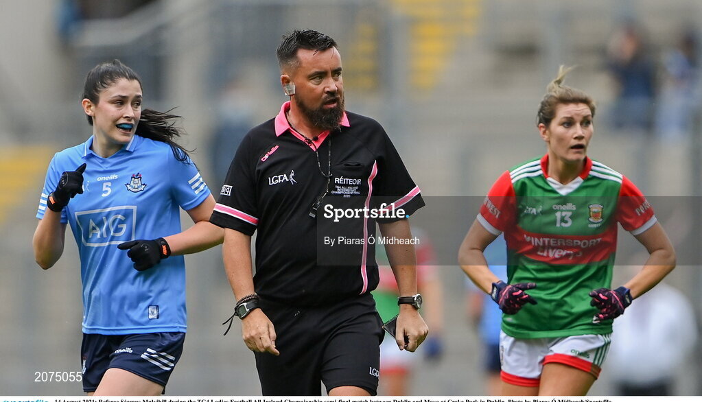 14 August 2021; Referee Séamus Mulvihill during the TG4 Ladies Football All-Ireland Championship semi-final match between Dublin and Mayo at Croke Park in Dublin. Photo by Piaras Ó Mídheach/Sportsfile