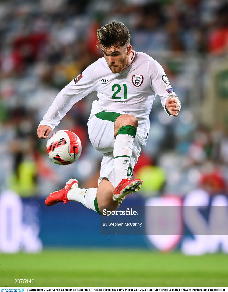 1 September 2021; Aaron Connolly of Republic of Ireland during the FIFA World Cup 2022 qualifying group A match between Portugal and Republic of Ireland at Estádio Algarve in Faro, Portugal. Photo by Stephen McCarthy/Sportsfile
