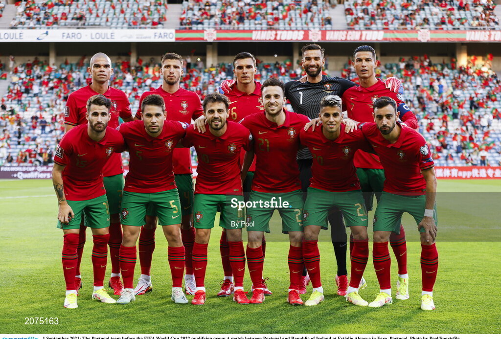 1 September 2021; The Portugal team before the FIFA World Cup 2022 qualifying group A match between Portugal and Republic of Ireland at Estádio Algarve in Faro, Portugal. Photo by Pool/Sportsfile