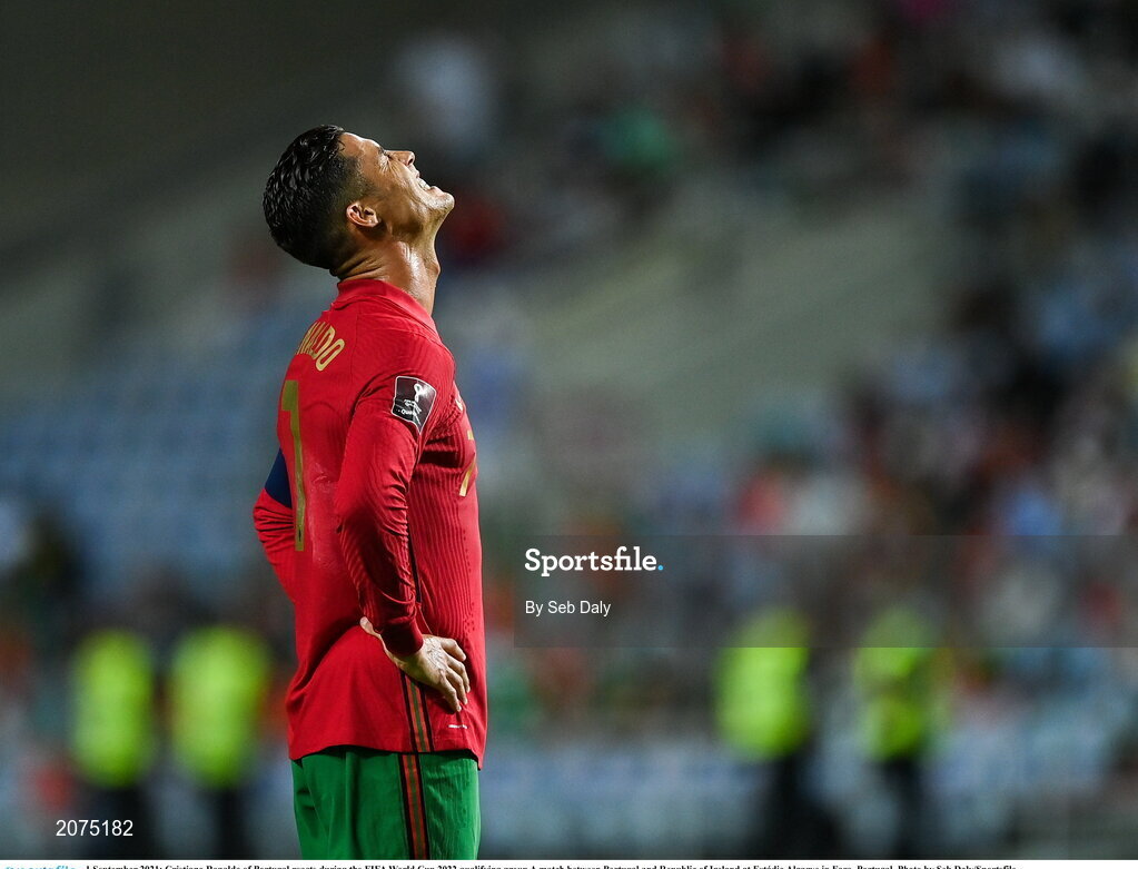 1 September 2021; Cristiano Ronaldo of Portugal reacts during the FIFA World Cup 2022 qualifying group A match between Portugal and Republic of Ireland at Estádio Algarve in Faro, Portugal. Photo by Seb Daly/Sportsfile
