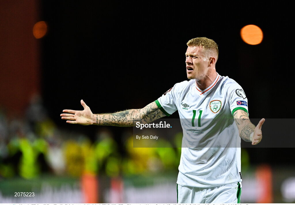 1 September 2021; James McClean of Republic of Ireland reacts to a decision during the FIFA World Cup 2022 qualifying group A match between Portugal and Republic of Ireland at Estádio Algarve in Faro, Portugal. Photo by Seb Daly/Sportsfile